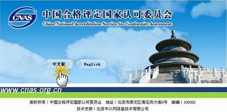 (三)通過國家認可委(CNAS)網站查詢 1、登陸CNAS網站www.cnas.org.cn,點擊“中文版”,進入國家認可委網站中文首頁;