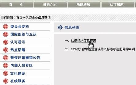 2、于中文首頁左下方,點擊“認證組織信息查詢”,進入信息列表;
