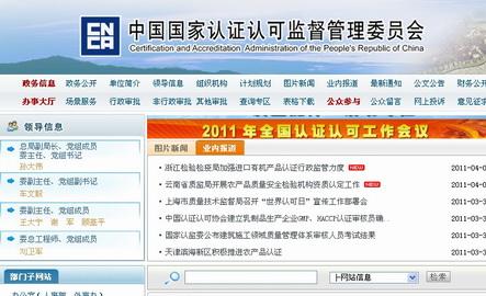 (二)通過國家認監委(CNCA)網站查詢 1、登陸CNCA網站www.cnca.gov.cn,進入國家認監委網站首頁;