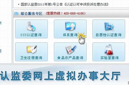 2、于首頁中部“綜合服務專區”,點擊“體系查詢”,進入體系查詢頁面;