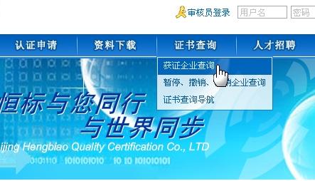 二、證書查詢方法 (一)通過恒標網站查詢 1、登陸m.xdgyw.com,進入北京恒標質量認證有限公司網站首頁;